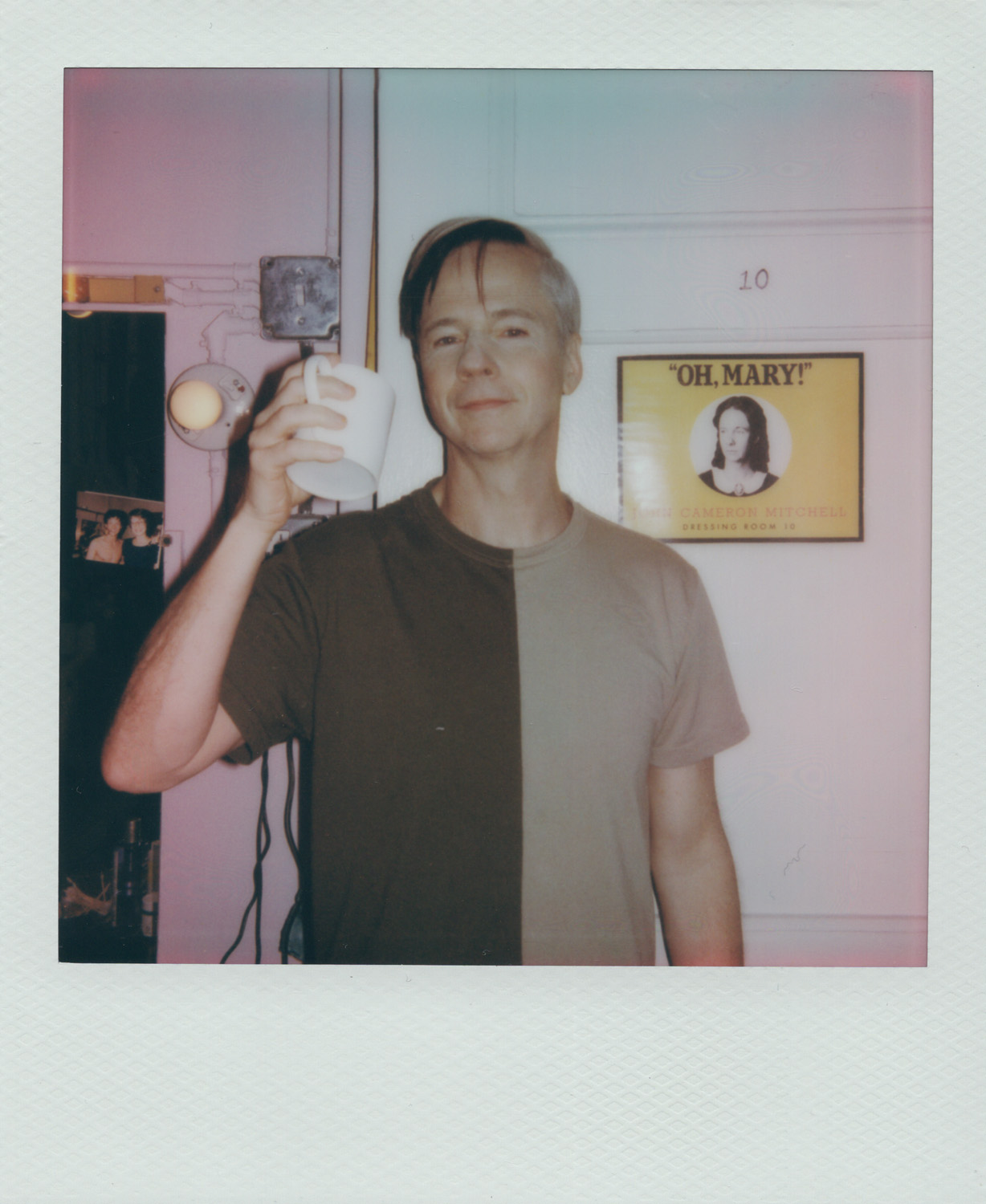 I look down at the carpet, and back up into the large vanity. I was transported into the mind of me at 11 when I decided I wanted to pursue theater as a career, and dreamed of a dressing room like this. Looking back at Mitchell, preparing a cup of tea, I am transported to the Belasco Theater only a few blocks away, where I saw the Broadway revival of Mitchell’s Hedwig and the Angry Inch at 17, months before I would move to Chicago to pursue a BFA in theater.