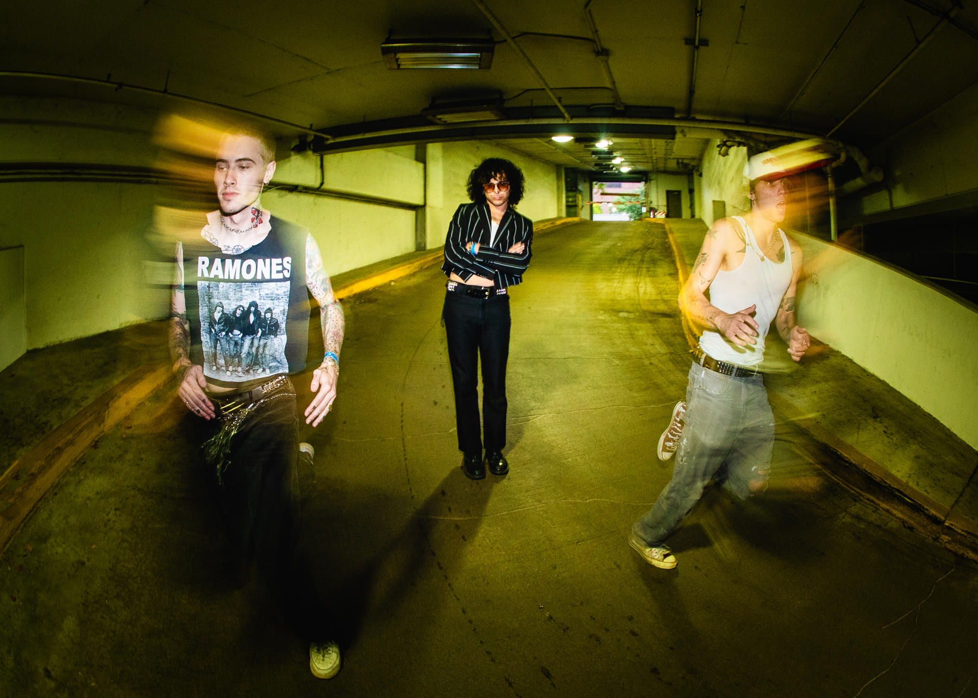READY TO EAT ends with “thanks for nothing,” an outro track that builds and swells around a vocal freestyle by Jager Bonham, a friend of the band. Discussing the final vocal line – “life is like a box of chocolates; go fuck yourself” – Novotny attests that sometimes the meaning of a song comes after it’s written: “I feel like we create art and then find reason for [it] after, because we write from where we’re at in the moment. A lot of times people think we have these elaborate preconceived ideas, and I think it’s more day-of, and then we sink into what it actually is.” Hutzler affirms that this approach allows listeners to find their own meaning in the songs – and adds that he wants fans to come out of the upcoming shows thinking, “that was the best fucking thing I’ve ever seen.” Novotny concurs, sharing that he hopes to build a space for fans to be themselves “and not give a shit about the outside world for an hour and a half…. My goal is to help kids escape as much as possible if they’re having a hard time in their own realities, cuz that’s what music is for us.”