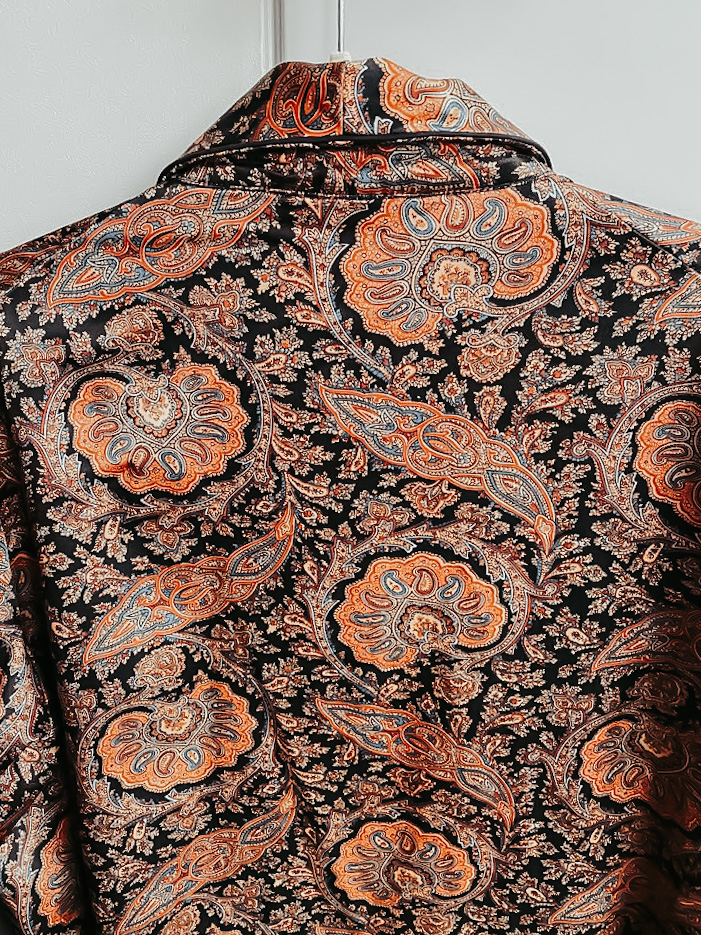 Speaking of my boyfriend, this robe is something I borrowed from him. He is a pretty flamboyant dresser and has a large collection of amazing patterned things. It’s huge on me which means I can wear it as a jacket over full outfits and it looks amazing. I love wearing it over a really simple, chic look to give it a bit of color and character.