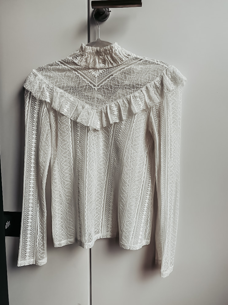 I found this top at a vintage shop that sold mostly furniture; I bought it and it quickly became a staple for my stage outfits. I love a super feminine blouse with a prince style ruffle, and I like to pair it with a more masculine jacket/trousers and this one is perfect.